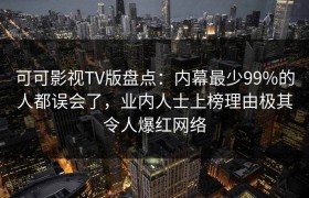 可可影视TV版盘点:内幕最少99%的人都误会了,业内人士上榜理由极其令人爆红网络