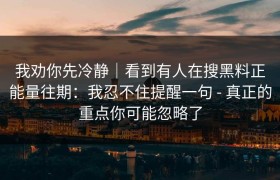 我劝你先冷静|看到有人在搜黑料正能量往期:我忍不住提醒一句 - 真正的重点你可能忽略了