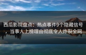 西瓜影院盘点:热点事件9个隐藏信号,当事人上榜理由彻底令人炸裂全网